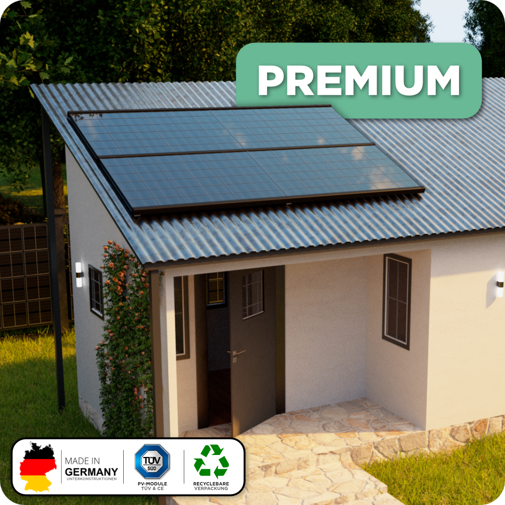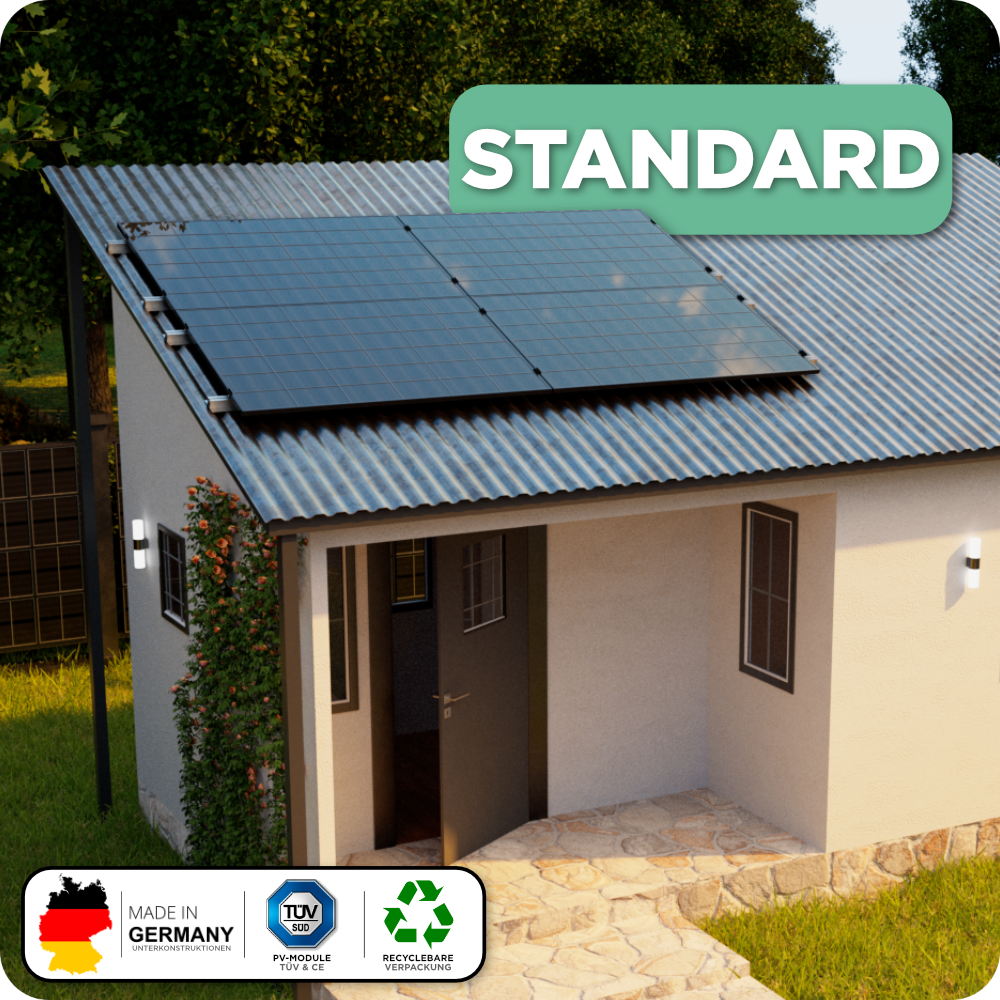 Unser Standard-Montagesystem bietet eine bewährte und kosteneffiziente Möglichkeit, Ihr Balkonkraftwerk sicher und stabil auf einem Trapezblech Dach zu montieren.